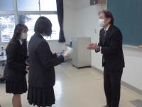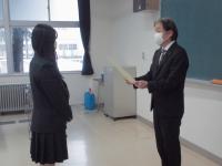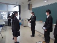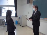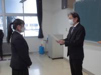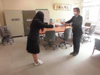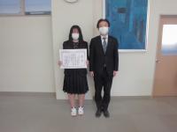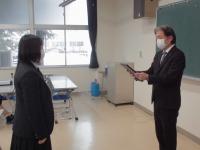3年羽田響和さんの表彰伝達式を校長室にておこない、