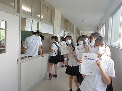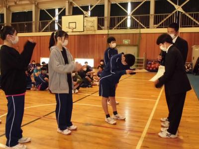 表彰伝達式では、レスリング部、商業同好会の生徒1名、男子バドミントン部の生徒2名、女子空手競技の生徒1名が表彰されました。おめでとうございます!