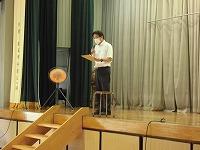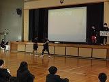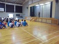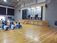 2,3年生は第一体育館で、1年生はCSホールでリモートをつないで行いました。