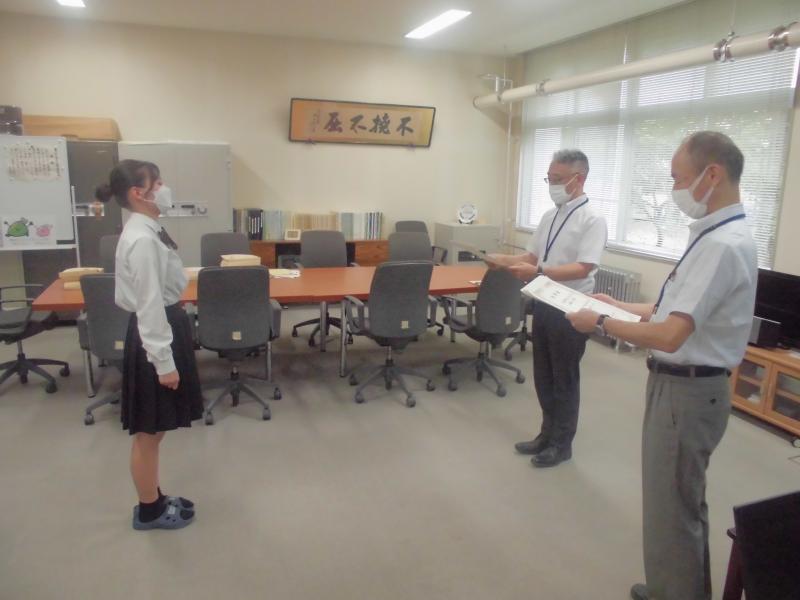 9月30日(木)に校長室で後期生徒会認証式が行われました。