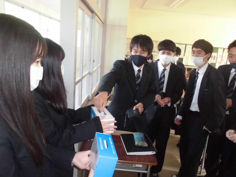 生徒会とJRC部のメンバーは朝8時から生徒玄関前で募金の呼びかけ、お昼休みは各学年の教室、各職員室をまわり、活動を行いました!