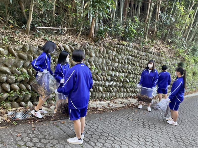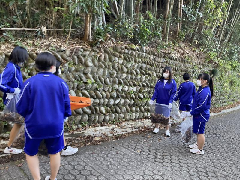 生徒は各学年、各クラスに分かれて森本地区のゴミ拾い、枯葉拾いを行いました!