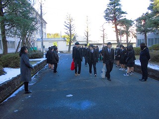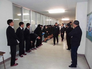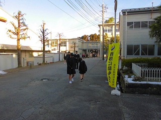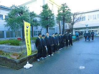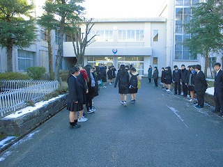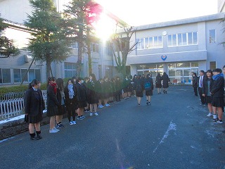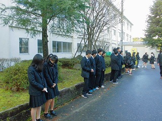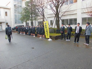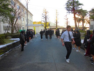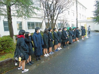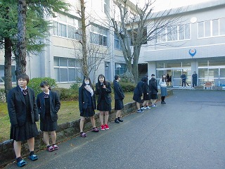 2月の朝のあいさつ運動が行われました。本日の担当は、茶道部・テニス部・家庭部・そして生徒会でした。足元が凍っている所もあり、吐く息も白く寒い朝でしたが、元気よくあいさつを行うことができました。ご苦労様でした。来月は3/4(水)~3/6(金)に行われます。