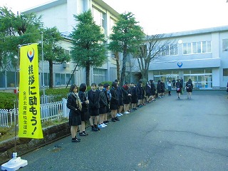 朝のあいさつ運動3日目でした。早朝より、元気よくあいさつができました。本日担当のレスリング部・弓道部・JRC部・英語部の皆さん、どうもありがとうございました。