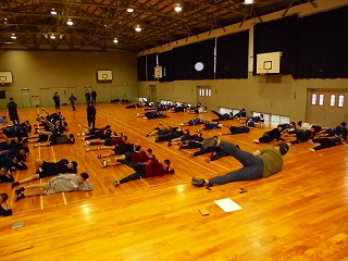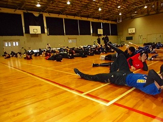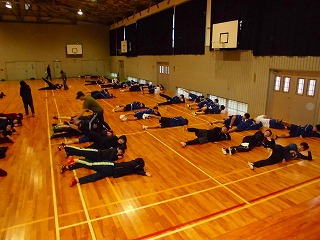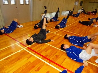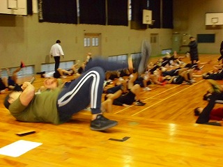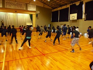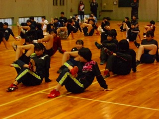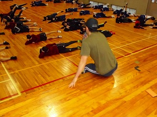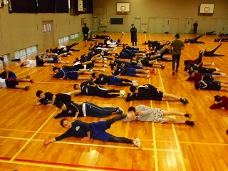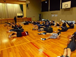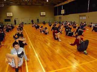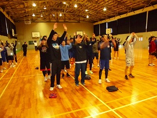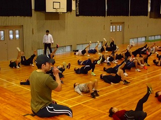 プロインストラクターの山下 駿 氏をお迎えし、約1時間トレーニングに汗を流しました。いくつもの運動部が顔を合わせながら、リズムに合わせ楽しいひとときを過ごすことができました。