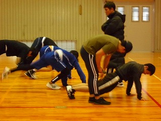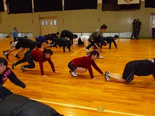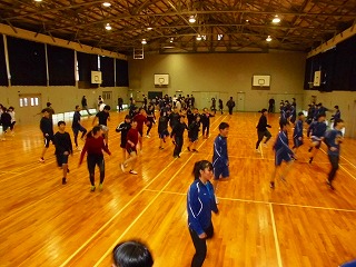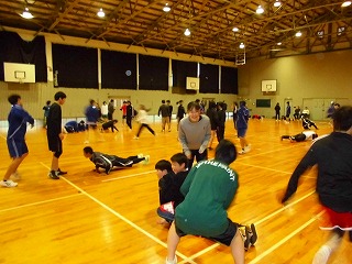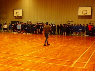 先週に引き続き、プロインストラクターの山下駿氏をむかえ、第一体育館にて、部活動合同トレーニングが行われました。本日にて、本年度最後となりましたが、小一時間、和気あいあいと楽しく時を過ごすことができました。