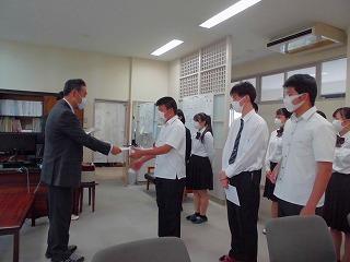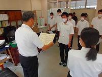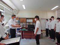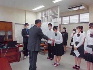 本日、昼休みに校長室にて表彰伝達式が行われました。