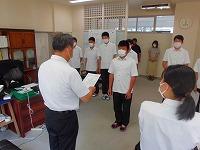 また、本日の職員朝礼にて前期生徒会役員のお披露目もしました。