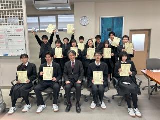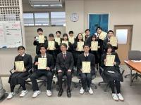 令和6年1月1日の能登半島地震の影響で授業が行えず、近くの公民館をお借りして検定勉強に励んできました。また1月に受験するはずだった検定試験が受験できなくなり3年次になってから再チャレンジをしたりと、大変なこともたくさんありましたが、それぞれが心を強く持ち頑張りぬいた結果、この栄冠を勝ち取ることができました。