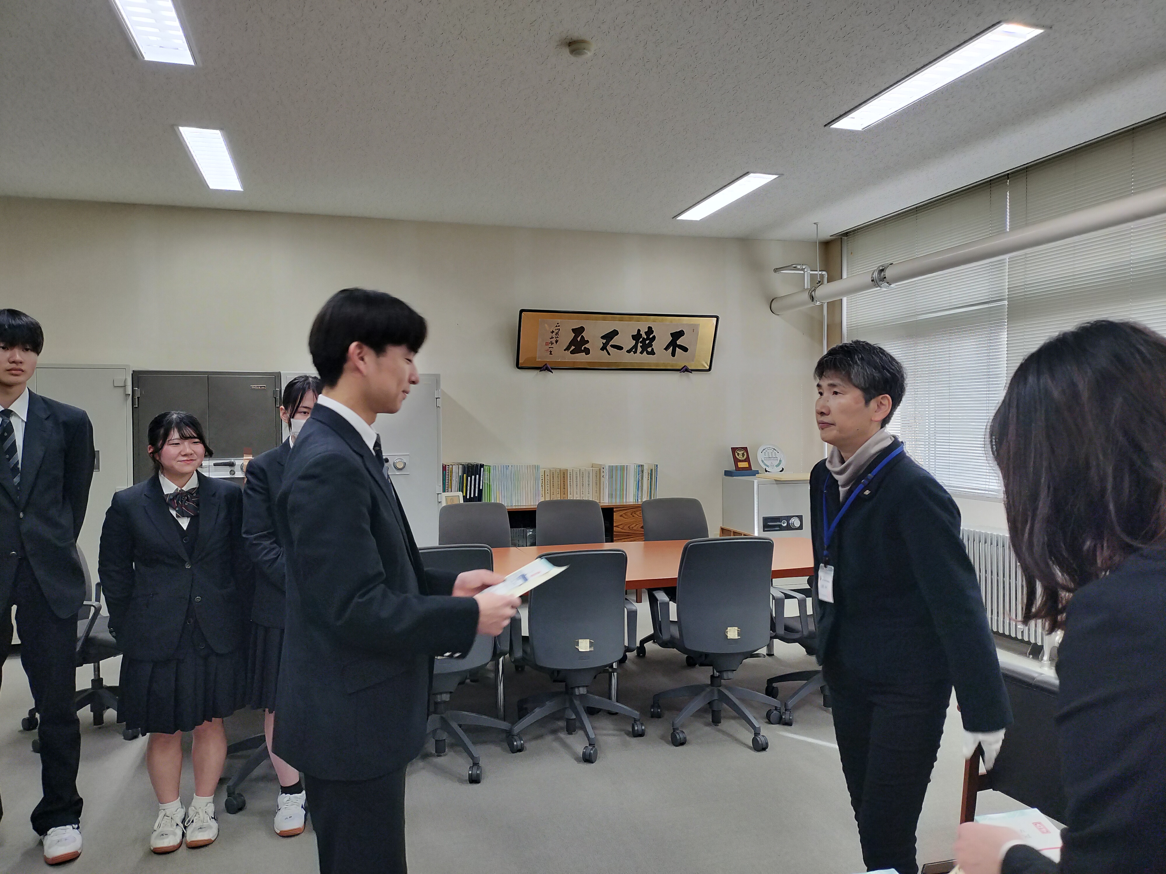 森本公民館の職員の皆さんは、部屋を事前に温めてくれるなど快適な環境づくりに気を配ってくださり、生徒たちに温かい励ましの言葉をかけてくださいました。館長さんはコーヒーやココア、ミルクティーなどを差し入れてくださり、生徒たちは勉強の疲れにエナジーチャージが出来、たいへん喜んでいました。ありがとうございました。