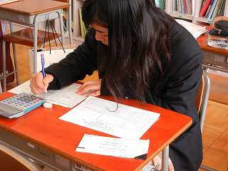 校内では、休み時間にも電卓を叩く音があちこちで聞こえてきます。