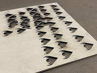 パソコンで図面を作り、そのとおりに こちらはベニヤ板ですが・・・