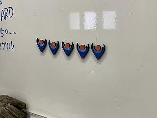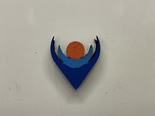 色を塗ったら、本校の校章でした! 裏にマグネットシートを張ると、ホワイト