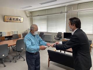 髙倉校長から辞令を受け取る井崎さん
