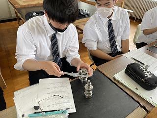 2年生 工業技術基礎 旋盤の実習内で、計測器の使い方を