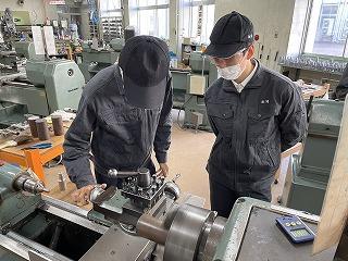 技能検定(普通旋盤)に合格している生徒に対して、久しぶりに