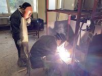 鉄板を切り、アーク溶接で溶接していきます。