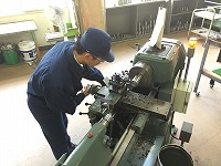 2級普通旋盤作業の課題作品     普通旋盤作業の様子