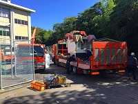 トラックで運ばれてきました     荷台から降ろして機械加工室へ