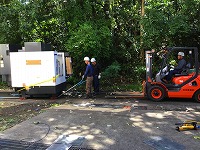 工場の中からウインチで引っ張ります     据え付け完了