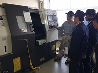 本校ではNC旋盤の使い方についての実習を行っています。