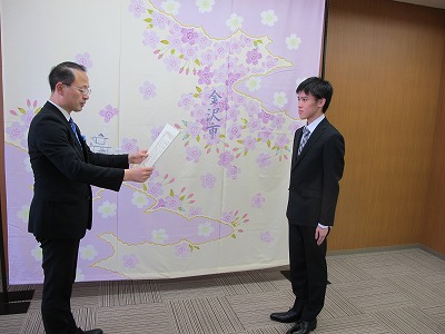 金沢市の山野市長から表彰状をいただきました。