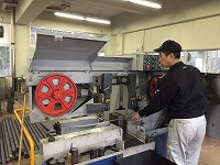 帯鋸盤で切断した鋼材の端面をきれいにし、長さをそろえます。