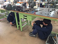 11:00の訓練開始時、工業系列3年生は実習棟で実習の作業中