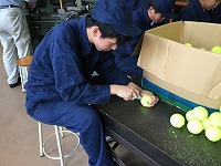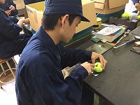 工業系列の生徒が、防音用として椅子に取り付けるテニスボールの