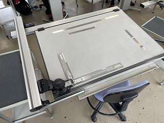 本校の製図室の様子です              「ドラフター」と呼ばれる製図台です