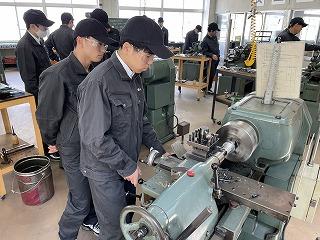 今回は「普通旋盤」の実習風景です