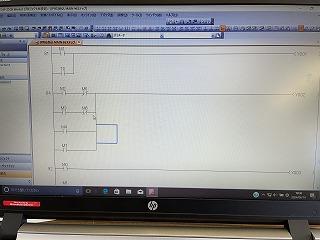 実習では環境開発ソフトで回路図(ラダー図)を作り、シーケンサーに