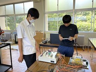 本校の工業系列・電気選択の生徒は電気に関する授業を受けつつ、