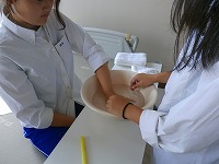 今回の生活支援技術は足浴・手浴の実技演習です。