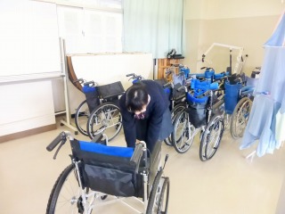 車いすが新しく5台入りました!!また、実習室を学務員さんがワックスがけをし、ピカピカになりました!!ありがとうございます!!