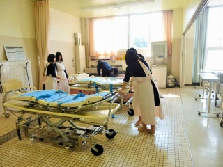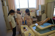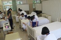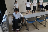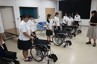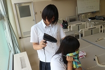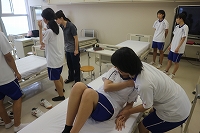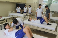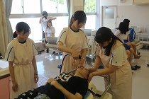 夏休みの施設実習に向けて、福祉系列の生徒は実戦的な授業を行っています。