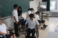 実際に生徒たちが、利用者役と介助者役に分かれて実習しました。