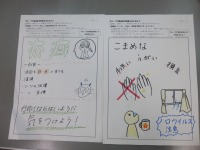 他のグループのポスターを見た生徒の感想では、「イラストがかわいい」「予防法が3つも書いている」などの感想がありました。