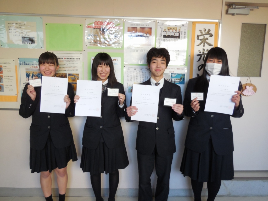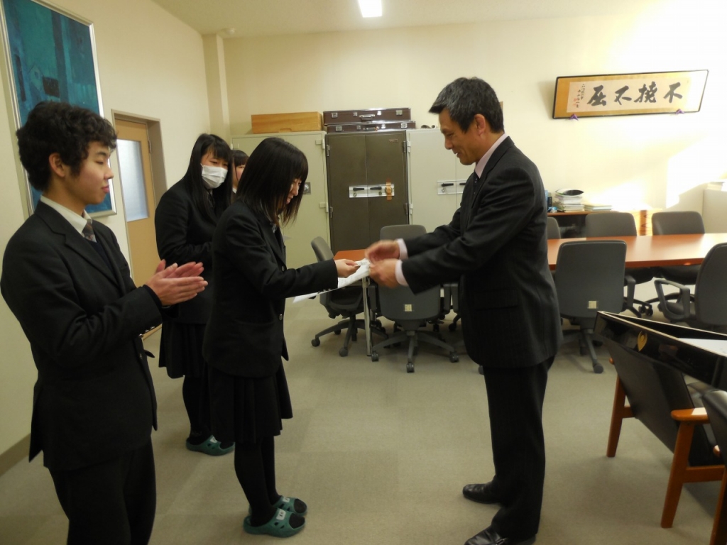 本日、福祉系列3年生4名が介護職員初任者研修修了証を校長先生より受け取りました。