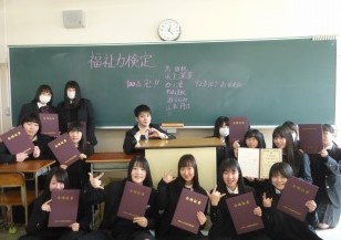 今年度、福祉系列2年生が全員、福祉力検定3級を取得したことになります。100点満点の生徒もたくさんいました!