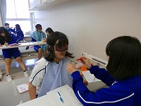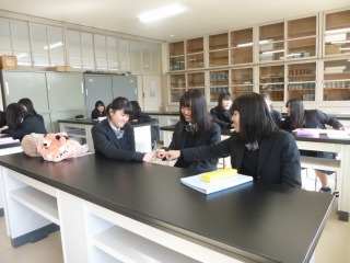 初めて福祉実習室に入った生徒たちは、わくわくした表情で授業を受けていました。