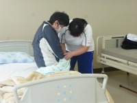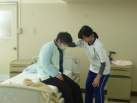介護福祉士国家試験レベルの難易度の高い課題でした。実技前、緊張していた様子がありましたが、リアルな設定の認知症役の試験官にうまく対応していました。