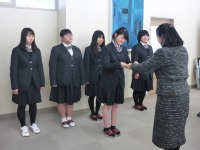 修了証書を受け取った生徒の中には、2年次からの学習を振り返って目を潤ませる生徒もいました。校長先生から激励の言葉と握手をしていただき、表情から達成感がうかがえました。
