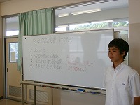 校長先生からも講評していただきました。2年次生からは「実際に体験した話を聞くと、詳しく様子が伝わってきました。」「発表内容がとても濃かったです。私が3年生になったときは、今の3年生のレベルで発表できるように頑張ります」という感想がありました。