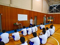あいにくの悪天候で体育館での授業となりました。