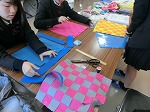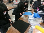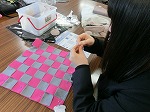水引のストラップを終了してフェルトでクッションを作っています。平編み