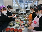 本日もおにぎらずの実習です。ある班が炊飯のときお米に食用色素をいれました。