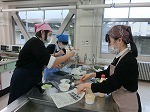 今回は鮭のホイル焼きの実習です。一人一人醤油やみそ、マヨネーズやバター、