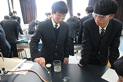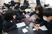 班で協力し、電池をつくり、電子オルゴールを使ってはたらきを確認しました。