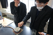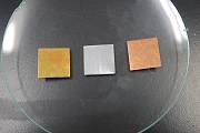 銅と亜鉛を反応させ、銅板を銀色、金色に変化させる実験を行いました。